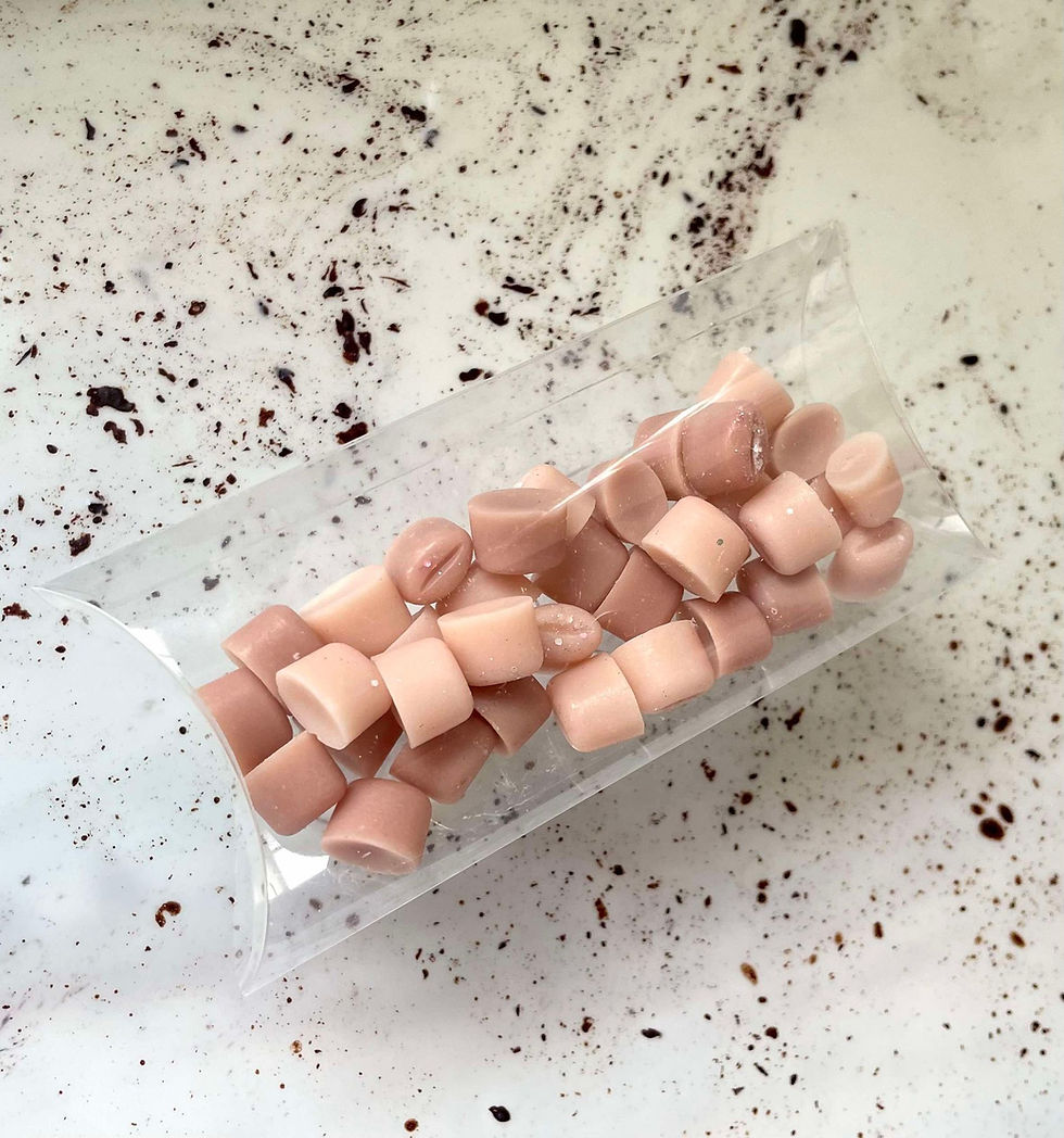Here you will find all our novelty shapes and slabs ... some of our quirky products such as our Piggy Mud Bath and Mermaid slabs, Cheeky Dinos, Mini Tarts, Flowers, Piggies, Teddies, Bows and Brittles ... all are made with our highly scented soy wax.